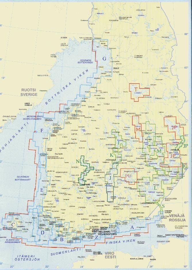 vihreällä. Jos kartasto on laajempi kuin MKL:n vastaava, laajennusosa on rajattu punaisella viivalla.