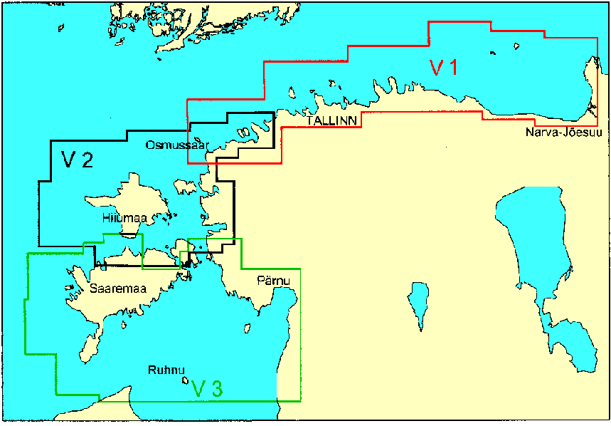 Kuva esittää Elmerin kartta-alueen kattavuutta Virossa.